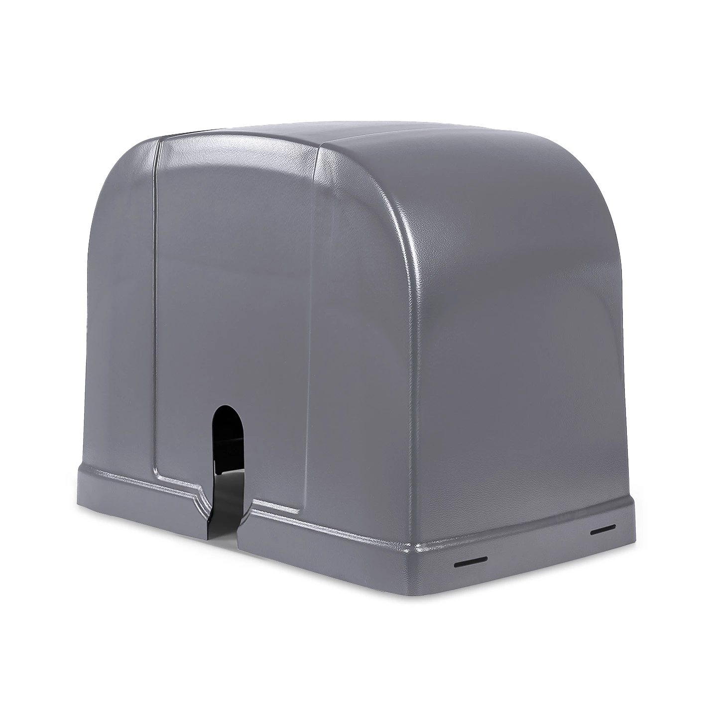 Dank einer wetterfesten Antriebshaube ist es erst möglich, einen Schiebetorantrieb und dessen Steuerungselektronik im Freien zu betreiben. Dafür muss die Haube so beschaffen sein, dass diese die darin befindlichen Teile sicher vor Feuchtigkeit, Frostschäden und UV-Strahlung schützt. Beim STA 400 ist die Antriebshaube so beschaffen, dass sie den Anforderungen der Schutzart IP 65 entspricht. Mit ihren großzügigen Abmessungen (B x H x T: 589 x 450,5 x 349 mm) kann sie problemlos den Motor, die Steuerung sowie ein Erweiterungsgehäuse komplett umschließen. Es gibt nur eine kleine Öffnung an der Seite, die es ermöglicht, dass das Antriebsritzel mit dem Tor interagieren kann.