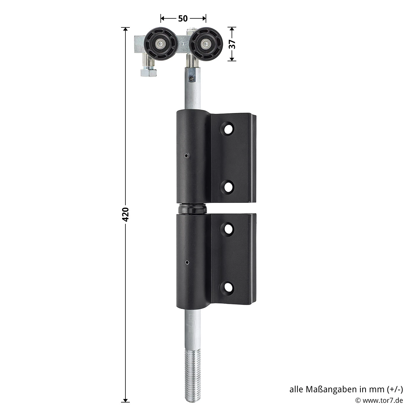 - Rollenhalter: 400 mm lang, unten M18-Gewinde, oben M12-Gewinde