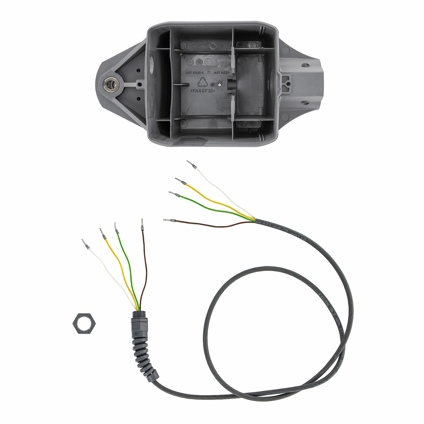 - 1 x Motoranschlussleitung kurz, 4-adrig (in Unterteil integriert)