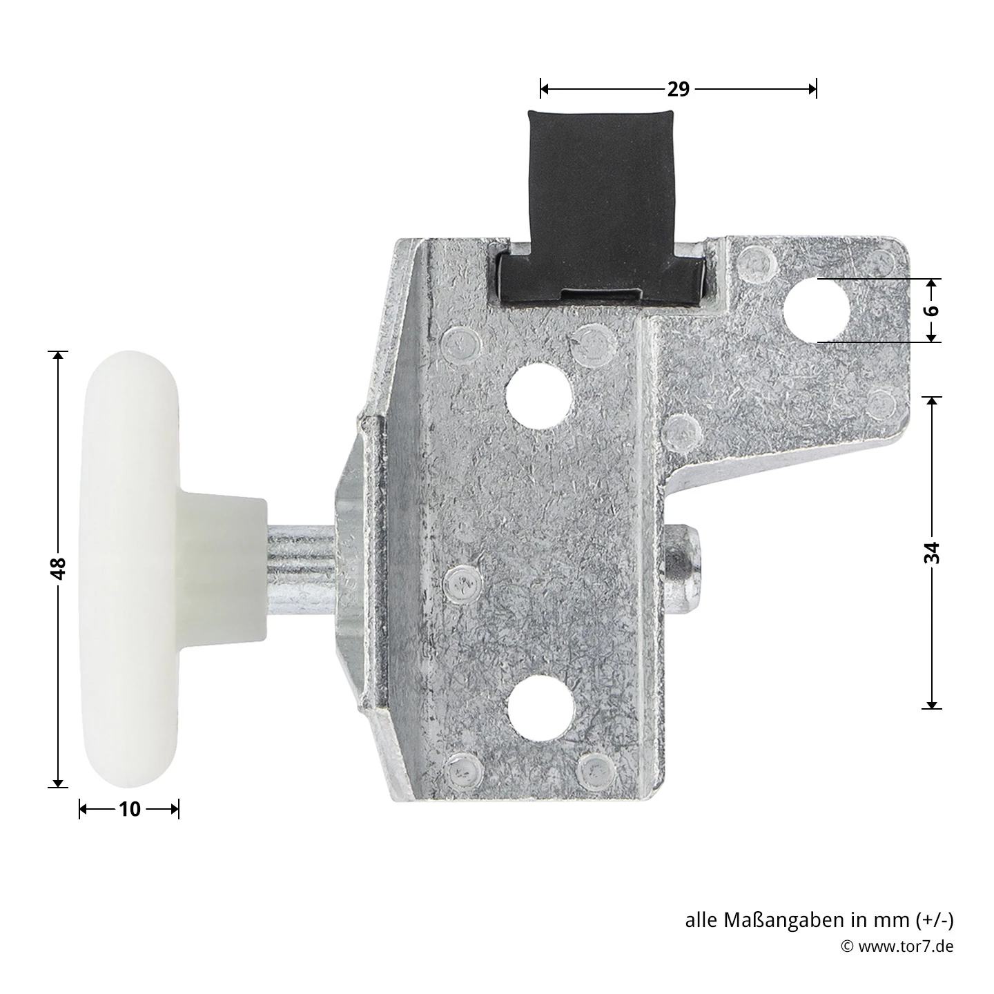 - Hörmann Rollenhalter F80, rechts, mit Laufrolle und Puffer