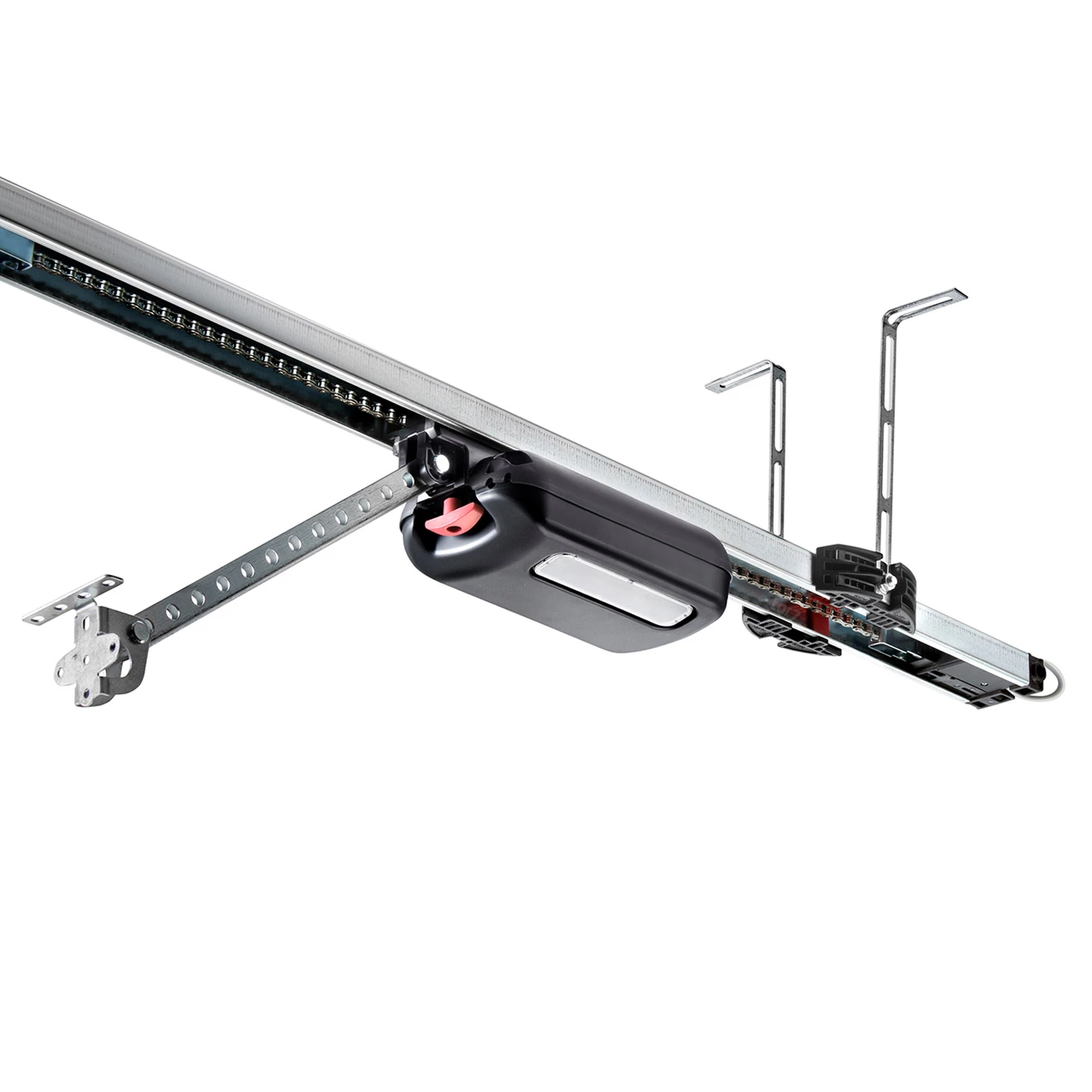 Bei den Garagentorantrieben pro+ und base+ handelt es sich um die neusten Modelle, die der Hersteller SOMMER derzeit anbietet. Diese profitieren aber auch von den langjährigen Erfahrungen durch die Vorgängermodelle Marathon, Sprint und Duo, welche stets zur Verbesserung der Antriebe führten. Wie bei allen SOMMER-Antrieben wird auch bei den Serien pro+ und base+ das Prinzip eines Deckenschlepper-Antriebs angewandt. Dies bedeutet, dass die eigentliche Antriebseinheit, der Laufwagen, nicht starr am Ende der Laufschiene befestigt ist, sondern selbst auf dieser entlangfährt. Im Gegensatz dazu ist die Kette nicht mitlaufend, sondern feststehend in der Schiene fixiert. Der Vorteil dieses Funktionsprinzips ist, dass die Antriebe verschleißärmer, langlebiger und auch wartungsfrei sind. Zudem kommt es im laufenden Betrieb zu einer geringeren Schallemission, welche nur selten den Wert von 59 db(A) übersteigt.